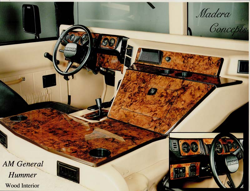 We manufacture absolutely Gorgeous wooden dashboard and trim sets that definitly speak of Elegance and Luxury and are perfiect for the interior of your H1 Hummer |